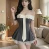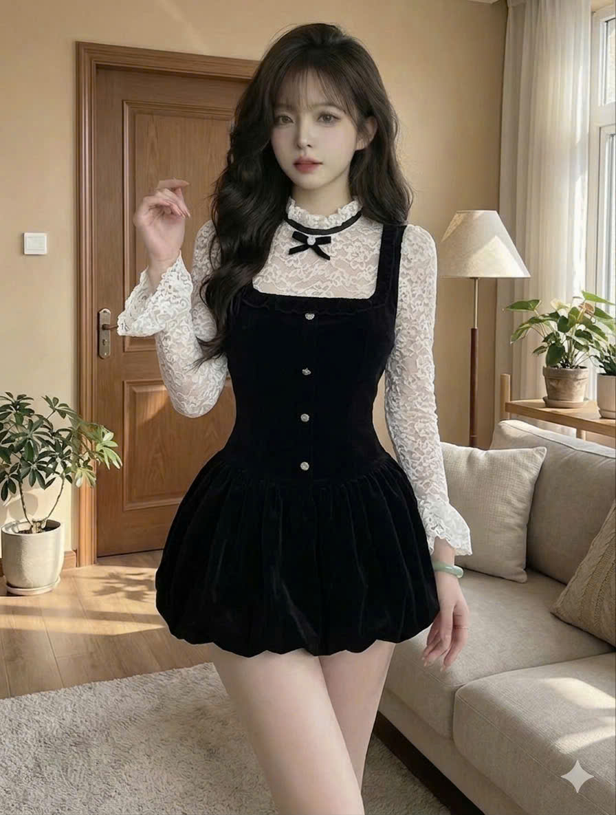 Đầm Yếm Nhung Đen Phối Áo Ren Trắng – Phong Cách Gothic Doll Sang Chảnh